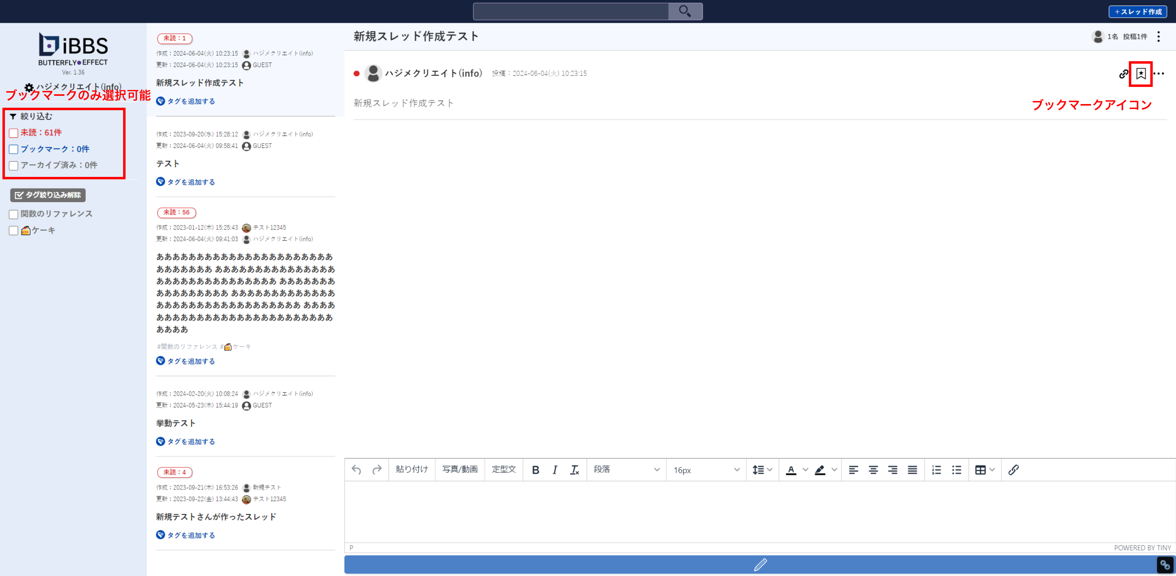 ・コメント欄の右上のブックマークアイコンをクリックすると、該当コメントをブックマークできます。