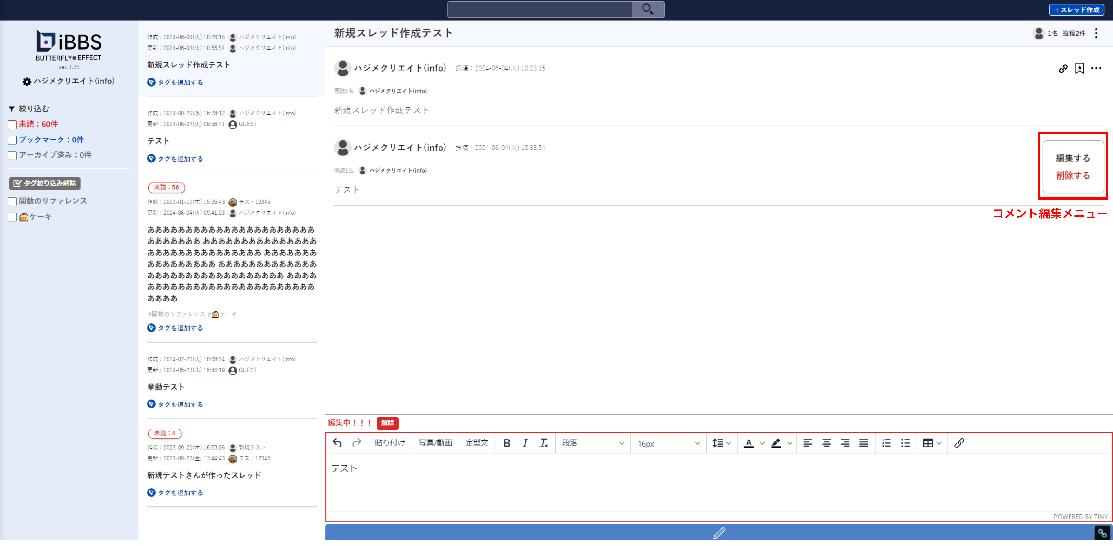 ・コメント欄右側のメニューから「編集する」をクリックすると、自分の投稿したコメントを編集することができます。