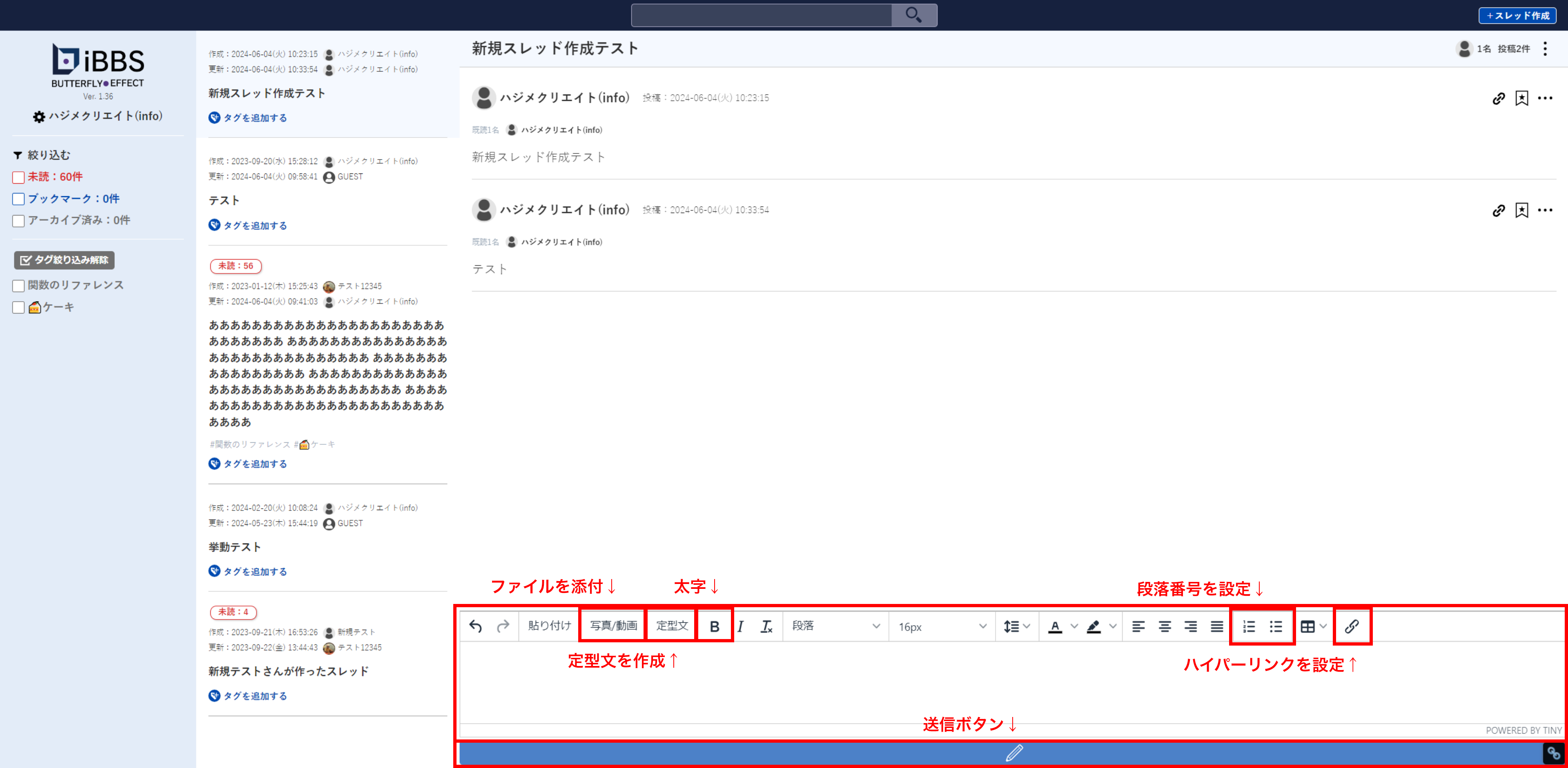 ・テキストボックスの下部の青い部分をクリックすることで、コメントを投稿できます。