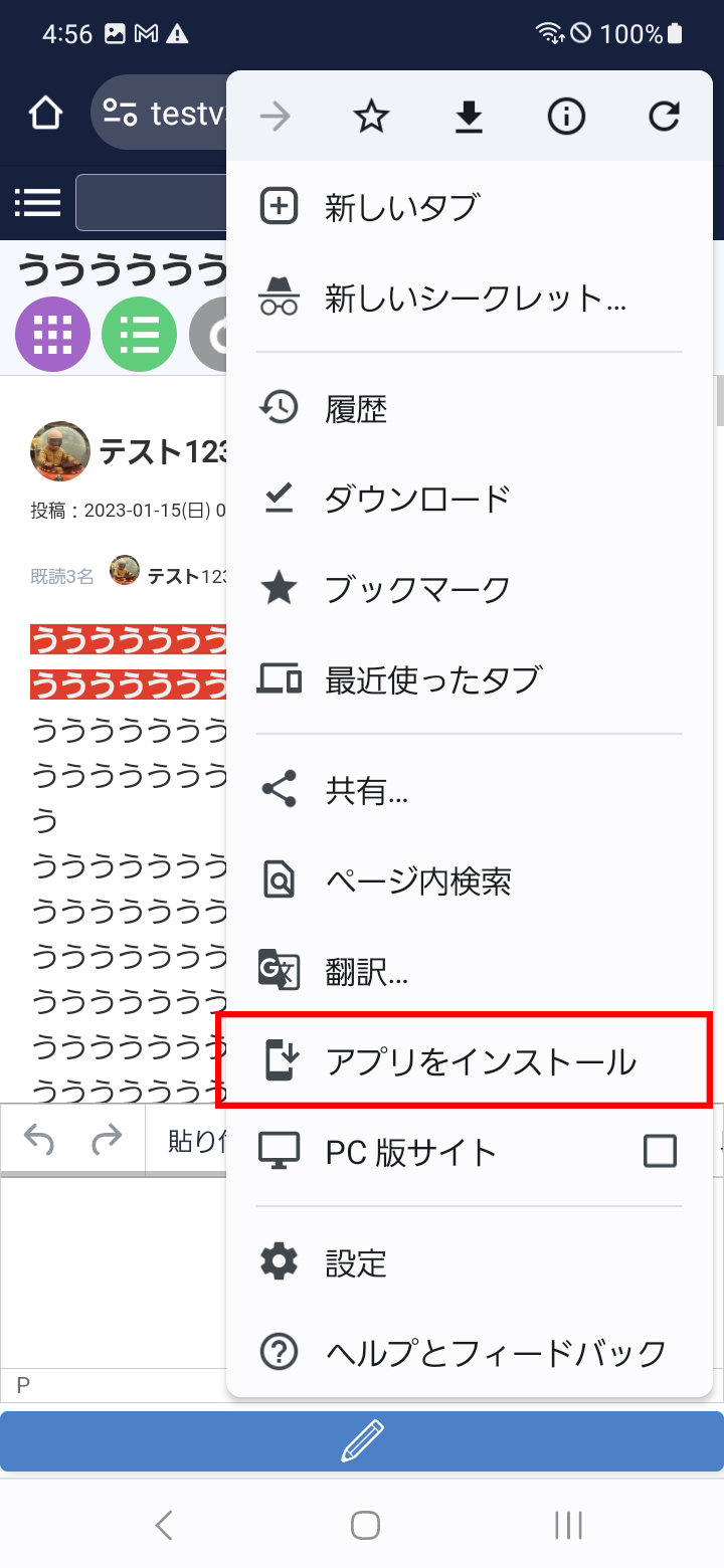 ③ 「アプリをインストール」を押下することで、ホーム画面に追加されます。