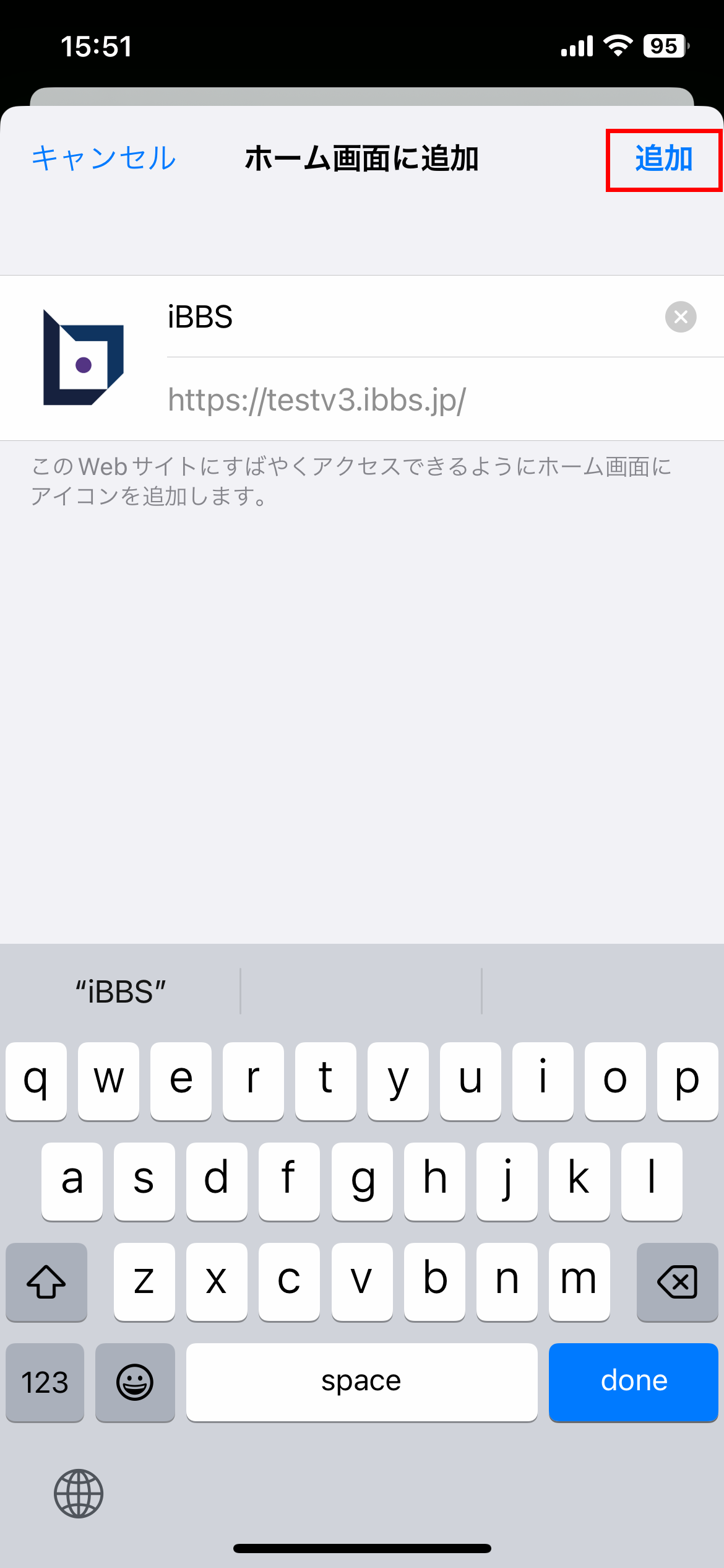 ・iBBSのアイコンをホーム画面に追加することができます。