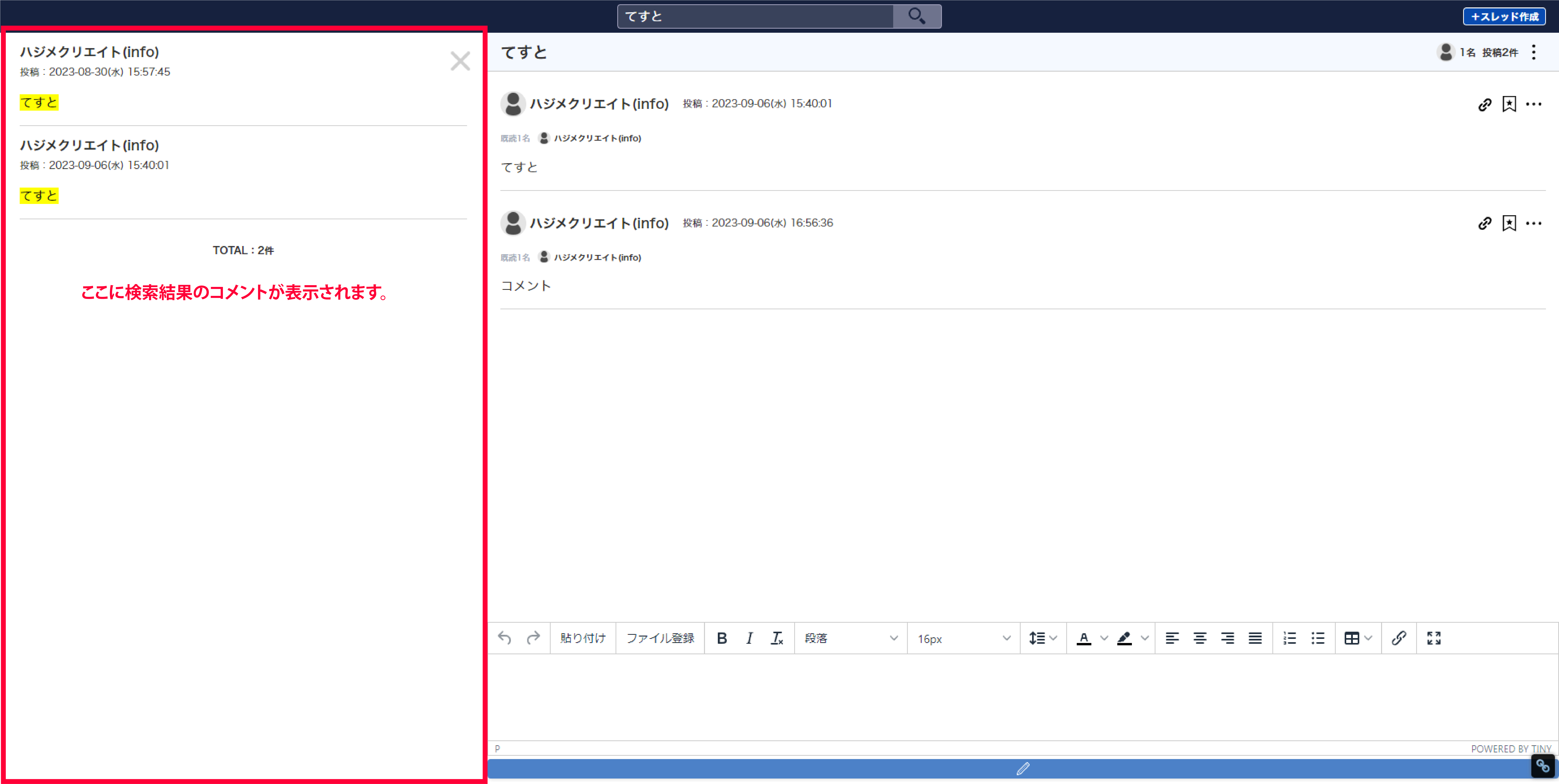 ・検索されたコメントをクリックすると、検索元のスレッドが表示されます。